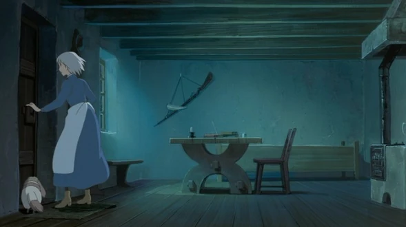 Am Himmel spenden Sterne den Menschen Licht. Sophie ist in ihrem Element, als sie in ihrer Stube Kleider näht. Geruht führt sie ihre Hand mit der Naht über den Stoff, um keine Stelle auszulassen. In die Stube, das im Hutladen Hatter's liegt, tritt Markl ein, um ihr mit einer wohlwollenden Stimme gute Nacht zu wünschen. Um Hauro soll sie sich nicht besorgt sein, redet Markl ihr zu. Sophie legt die Hexe ins Bett, um darauf die Hexe zuzudecken. Die Hexe sagt ihr, dass Sophie verliebt ist, worauf sie jünger wird. Doch die Ruhe wird unterbrochen. Sirenen heulen in Sophies Heimatstadt und die Qualkappen schwärmen aus, auf der Suche nach Hauros Schloss.