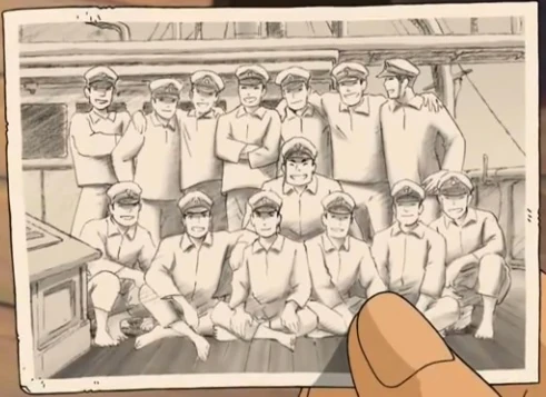 Shun und Umi haben noch 40 Minuten Zeit. Sie laufen in Richtung Hafen. Sie treffen auf Gen, der sie zum Hafen mitnimmt. Jedoch stecken sie später im Stau fest. So laufen sie weiter zu Fuß zum Hafen, wo Akios Schiff bereits auf sie wartet. Die beiden treffen auf Onoderas Schiff Koyo Maru Yokohama ein. Der Kapitän Onodera ordnet seinen Matrosen an, die Abfahrt um 15 Minuten zu verschieben. Er zeigt ein Foto von Tachibanas Crew und beginnt zu erzählen: