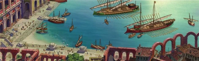 Einige Matrosen gehen voller Ehrfurcht und Neugier in deckung, als ein rotäugiger Drache vom Himmel an ihnen vorbeidüst. Dem Drachen folgt ein Streifen aus Feuerfunken und tropfendem Blut. Zu ihm gesellt sich ein anderer Drache, um seine Krallen in sein Fleisch hineinzubohren. Der verletzte Drache schnappt seine Flügeln zusammen und fällt hinunter. Doch der siegreiche Drache lässt von seiner Beute nicht ab und frisst ihn.
