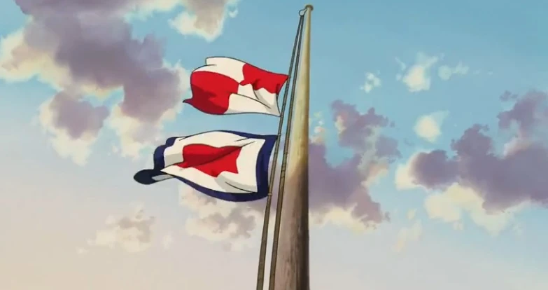 Shuns Flaggensignal auf Sachikos Bild.