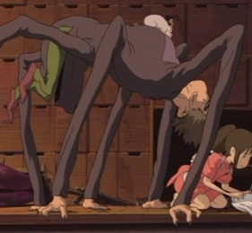 Kamajī ist ein Spinnenmensch (jp. Tsuchigumo). In Japan gelten Spinnen als Symbol für Industrie und Machbarkeit[8]. Als Tsuchigumo werden auch Menschen bezeichnet, die mit Schmutz und Dreck bedeckt sind, als würden sie in einem Loch leben[9]. So lebt Kamajī unter der Erde in einem dunklen Raum.