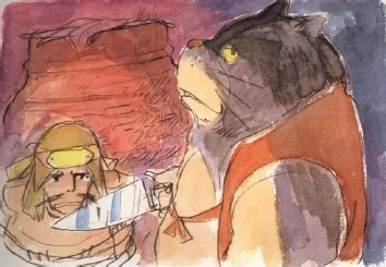 Dass er nun ein Berglöwe ist, hat er einer bösen Tat zu verdanken; einst jagte er Hühner und ärgerte sie. Als er eines Tages aufwachte, fand er sich in einen Berglöwen verwandelt wieder. Wer den Zauber gewirkt hat, ist unbekannt.