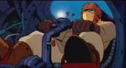 Nausicaä und Mito steigen in den Gunship, welcher sich im Seelenverkäufer befindet. Nausicaä ruft Kushana zu, in den Gunship zu springen. Sie hat vor den Lastensegler zu folgen, welcher durch den Angriff ins Meer der Fäulnis gleitet. Alle setzen ihre Atemmaske auf.