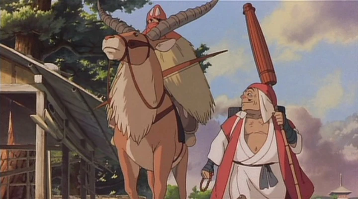 Der Wandermönch gibt ihm den Hinweis, dass im Zedernwald ein Waldgott lebt, der für jeden Menschen wie ein Hirsch aussieht, aber jedem fremd ist: Wer ihn ansieht, wird mit dem Tod bestraft – als sei er eine Medusa. Am Morgen bricht Ashitaka auf, obwohl der Nebel sich noch nicht gelegt hat.