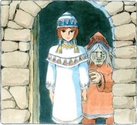 Ältere Frau: „Du bist im heiratsfähigem Alter und ich will einen weiteren kraftvollen Helfer haben.“ Sie will, dass Thea sich einen Ehemann unter den jungen Dorfbewohnern aussucht. Weiter spricht sie: „Wenn du es nicht willst, verlasse mein Haus.“ Sie würde Theas Einspruch ignorieren [, wenn Thea überhaupt ihre Stimme erheben würde]. Thea näht Kleider für Shuna aus ihren getragenen Klamotten.