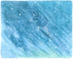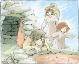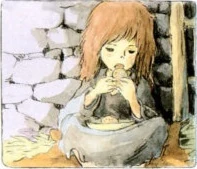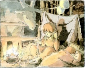 Sie steht kurz vor dem Zusammenbruch. Doch ein Blick zu einem kleinen Lichtfunken lässt sie wieder neue Kraft schöpfen. Es ist das Licht von Shunas Feuer, das bei seinem Versteck brennt. Es brennt [deswegen], weil die jüngere Schwester es sich jeden Tag zur Aufgabe macht das nötige Feuerholz zu sammeln.