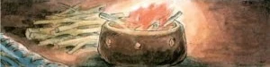 Sie holt einen Nadel und einen Faden. Sie flickt Shunas Kleidung. Sie kann es sich nicht vorstellen, was er durchgemacht haben muss. Sie fühlt sich seit diesem Tag an verpflichtet ihm zu helfen [als Gegenleistung dafür dass er sie aus der Sklaverei befreit hat].