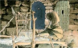 Ab jetzt arbeitet Thea härter, um Shuna mitversorgen zu können. Wenn der Arbeitstag zu Ende geht, bleibt sie lange wach bis in die Nacht, um Kleider aus den selbstgesponnenen Fäden zu weben.