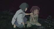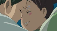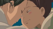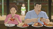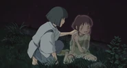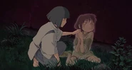 Chihiro, crying while eating Haku's rice balls