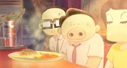 According to French fansite Buta Connection, the film is experimental in nature, and goes in very different directions due to having various directors assisting Yoshiyuki Momose. Producer Toshio Suzuki encouraged an 'anything goes' mentality when developing this project. It is also a project which involves the personality of Momose in a very important way. The film's tongue-in-cheek tone is pronounced more heavily in this feature as well, such as the episode involving employees squaring off in a "curry eating battle".