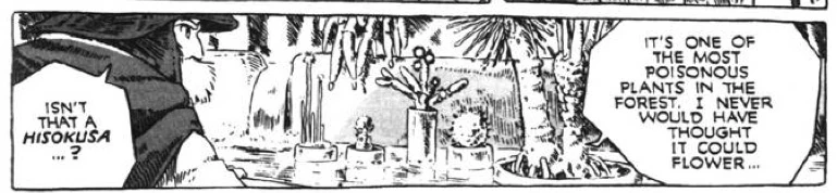 Hisokusa [1] is a poisonous plant from the Toxic Jungle. Nausicaä successfully grows a non-poisonous version in her garden lab.