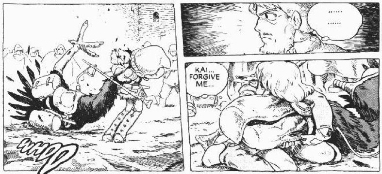 Master Yupa Miralda gives Kai to Nausicaä on the eave before the Valley of the Wind forces leave to join Kushana's Periphery Campaign, saying that "he'll stand her in good stead on the battlefield [2]."