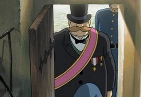 The mayor is a patriot distributing leaflets in his beloved country Ingary. He visits Howl to convince him to join the army.