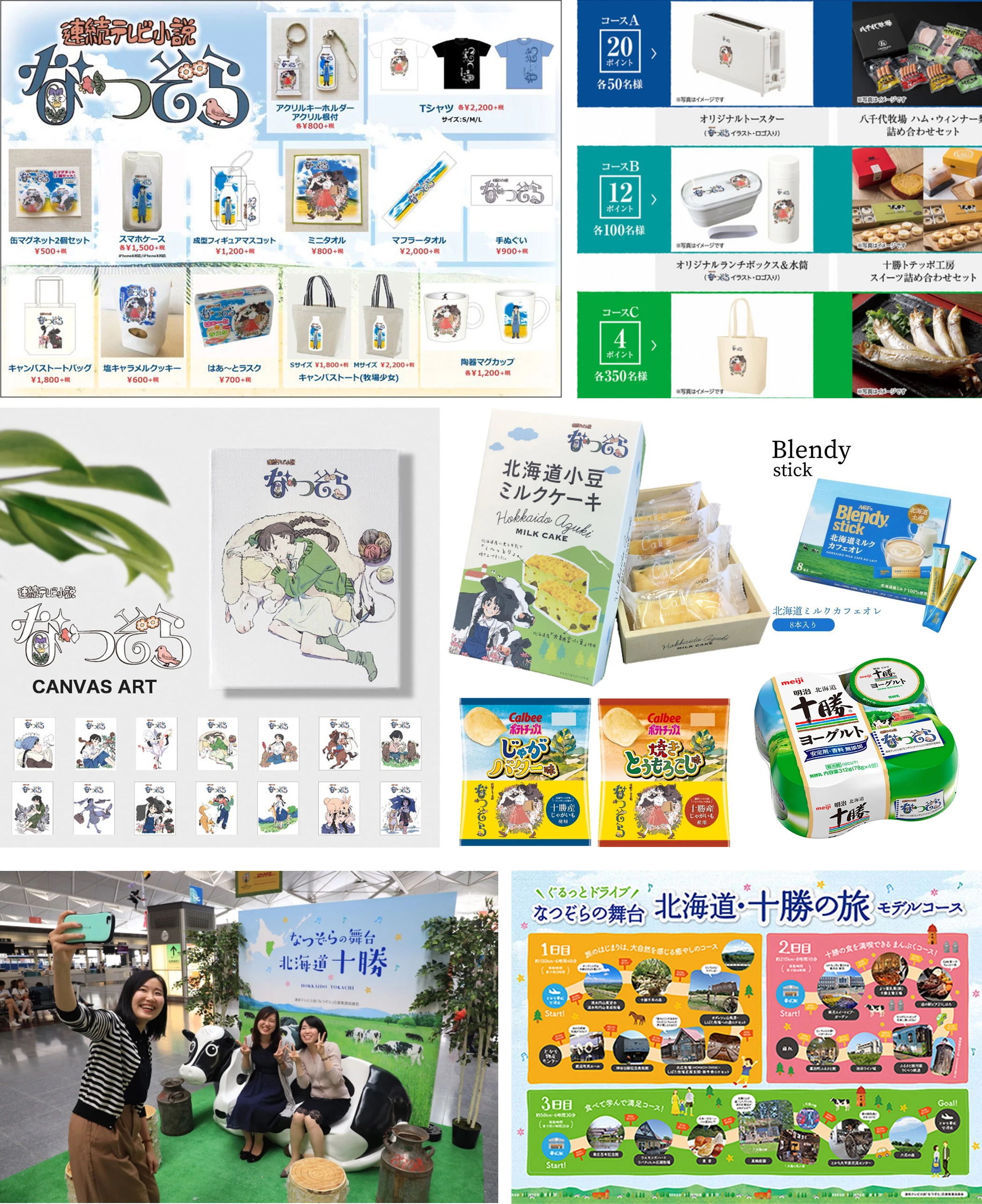 The series has had a major economic benefit for Hokkaido, with a reported earning of 9.5 billion yen by the Bank of Japan Kushiro Branch and the Obihiro Office to the region. A 4-meter signboard was installed at Obihiro Station to promote the series with the message, "Welcome to Natsuzora's Stage Tokachi". The Tokachi tourist office of Obihiro City plastered posters all over local tourist attractions, transportation paths, etc. During the series broadcast, tie-in products and life-size cutouts of the cast were featured throughout Obihiro City.