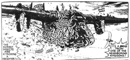 Despite their best efforts, including firing the main guns on the gunship, Nausicaä and Mito watch helplessly as the Brig the crazed insects chewed through the wing, causing it to crash [3]. Everyone on board is killed except Lastelle, who dies of her wounds a short time later.