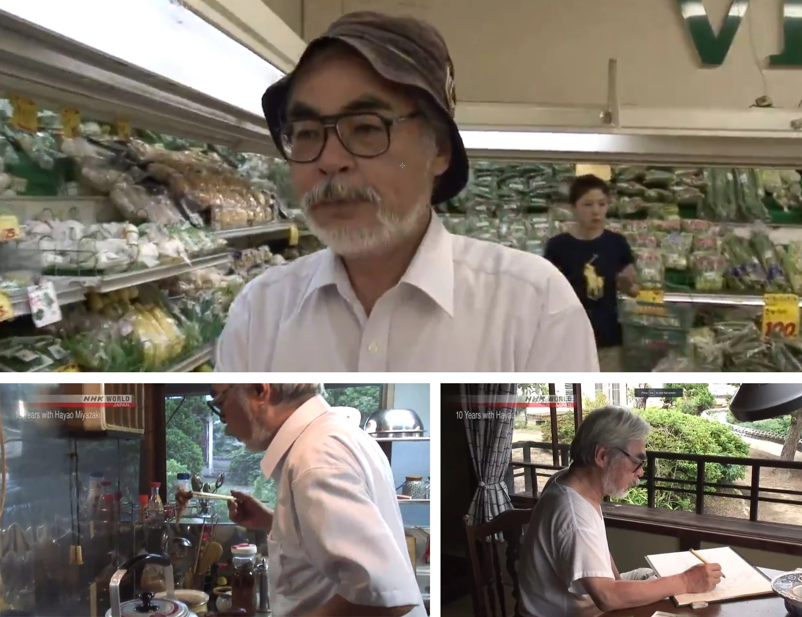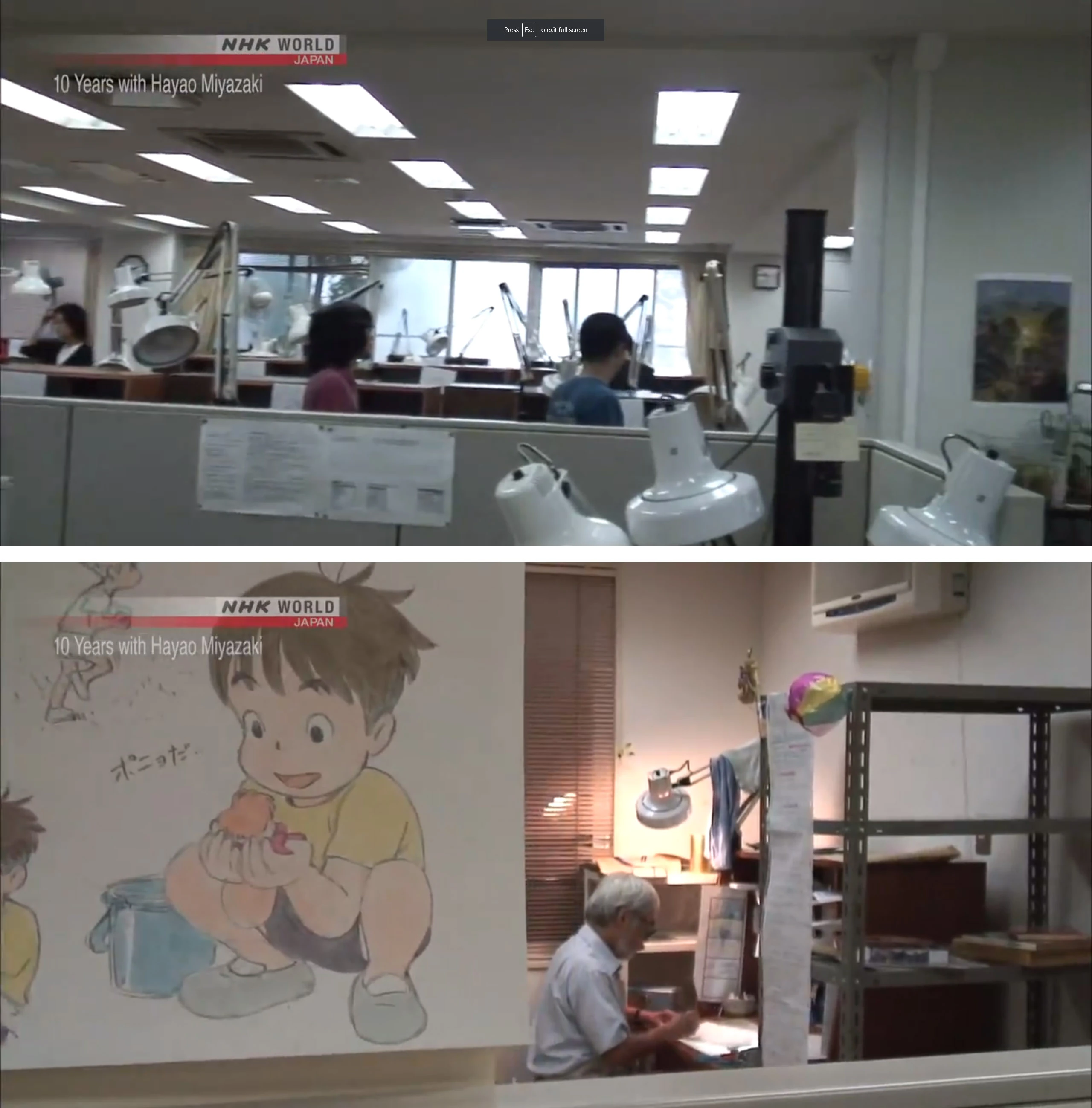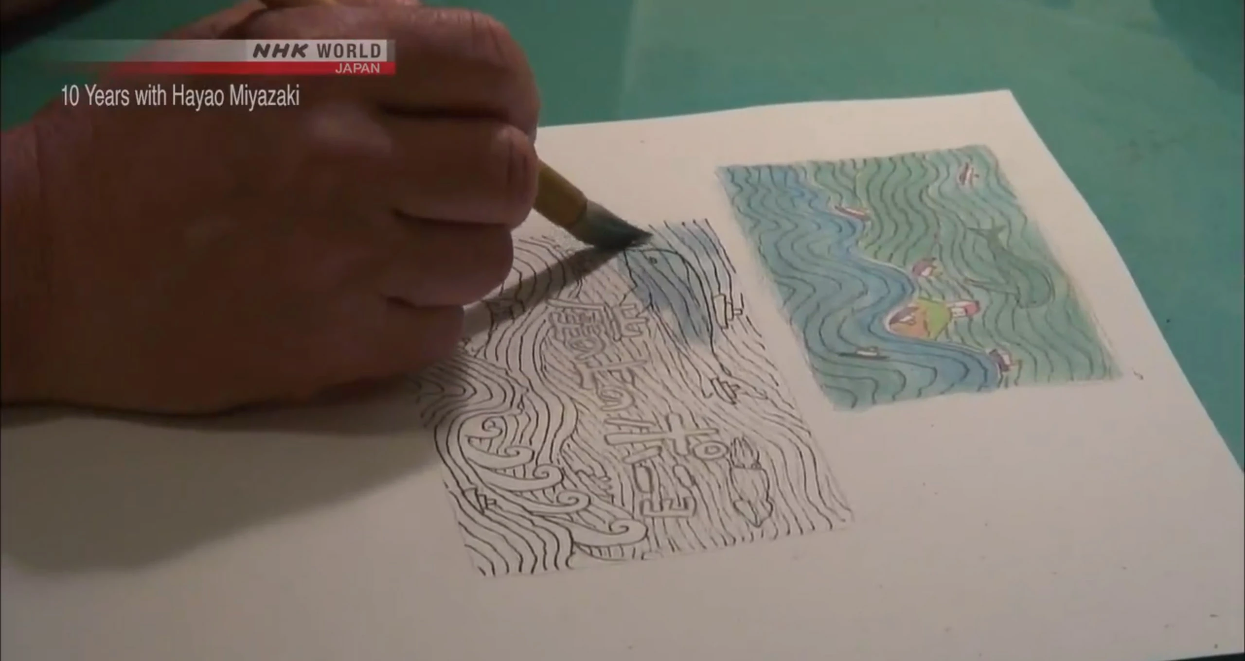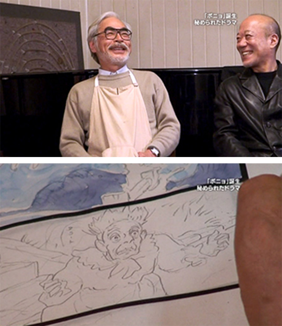 The NHK documentary on the making of Ponyo features Miyazaki at the drawing board.