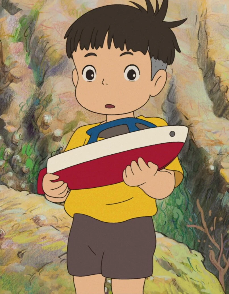Sosuke's Boat is a toy boat that Sōsuke plays with. He's able to hold the boat in the beginning and later when Ponyo sees his boat and uses magic to make it big enough to ride in, Ponyo and Sosuke carry it outside his house. Sōsuke uses candles to make it move. He later steers this boat to find Lisa at the Senior Center.