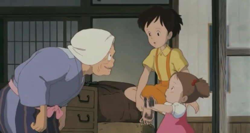 Sootballs appear at the beginning of the film when Satsuki, Mei, and Tatsuo Kusakabe first move into their new house. The Sootballs were noticed when they left around black dirt which is soot dust within the attic of the Kusakabe house which ended up on Mei's hands and the soles of both Satsuki and Mei's feet. They are everywhere and move quickly from the light into the shadow, which they take a liking to. Mei tries to catch some, but despite this, they agree that the Kusakabe family is good and they leave to another abandoned area. When one of them gets caught, they all become dust.