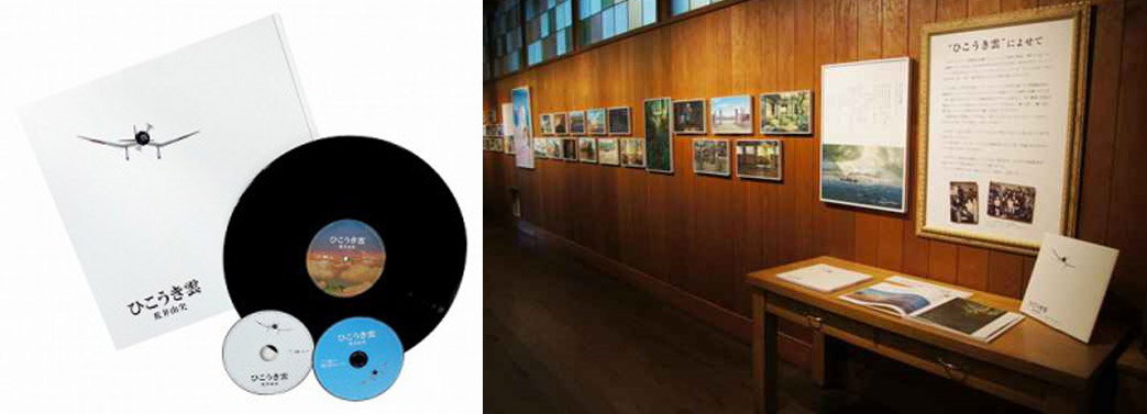 Hikōki-gumo was re-released on vinyl record to coincide with a special exhibition at the Ghibli Museum. Miyazaki first encountered the song just after he graduated from university. Upon hearing his son play the song one day, the elder Miyazaki replayed it again and again until the cassette tape broke.[21]